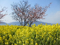 場所によっては、菜の花とのコラボレーションも見られるんですよ