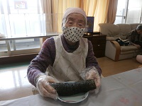 その日の昼食は恵方巻きで皆様大きく口を開け、かぶりついておられました。