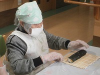 出来上がった巻き寿司は昼食で美味しくいただきました♪