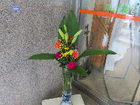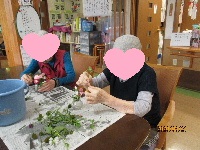 利用者様のご家族が持ってきてくださった花手水とスタッフが生けた玄関のお花です。