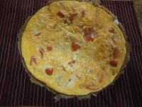 頂いたトマトを使って、スムージーとオムレツを作りました。
