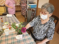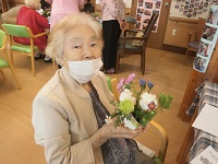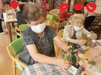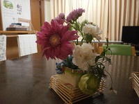 おれんじかふぇにて、フラワーアレンジメント作りに参加