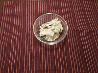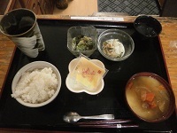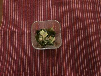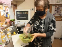 朝ごはんに、入居者様にキュウリとわかめの酢の物を、男性スタッフが