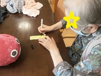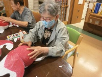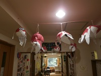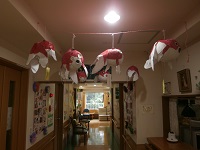 完成した金魚ちょうちんをホールに飾りつけしました。