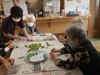 皆さま、とても手慣れた手つきで、綺麗にヘタを取り、