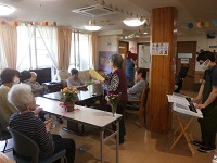 スタッフの伴奏で、入居者みな様で歌のプレゼント