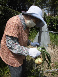 とても楽しかったようで、両手いっぱいに玉ねぎを持って