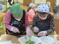 一つ一つ丁寧に爪楊枝を使いヘタを取って、実の部分にも穴をあけました