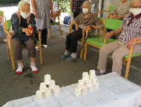 今日のレクレーションは、「水鉄砲」にしました