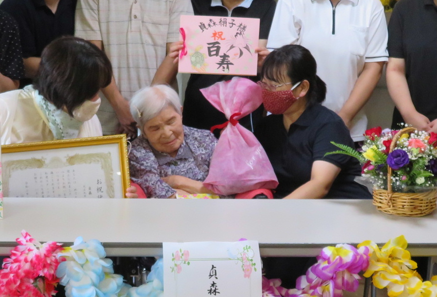 グループホームへ16年入居されている女性のご利用者様、8月21日に100歳の誕生日を迎えられました。