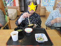 今日の昼食は厨房の日清様にご協力いただきまして、「吉野家の親子丼」を皆さんで頂きました。