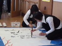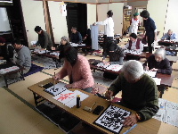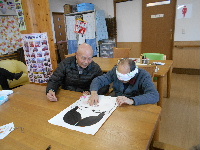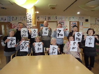認知症予防の為の楽しいリハビリ教室や、手袋を使った人形作り、絵馬、書初めなど思い思いの作品作りに取り組まれ、おみやげとしてお持ち帰りいただきました