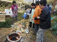 舞い上がる煙の中、どんど焼きと一緒に焼いた ”さつまいも”のおいしいこと!!