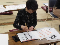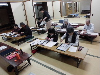 皆様真剣に筆を走らせ「できた~。習字なんて何十年ぶりよ」