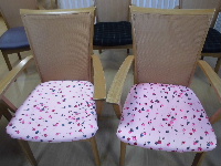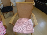 色とりどりのかわいいイスに仕上がり、ご利用者様も「私はこのイスがいい」「私はこっち」と