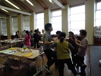 2週目の今日は、「体を動かす意義」のミニ講義のあと、全グループで「初恋」に関する一文づくりを