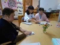 地域交流センターにて10:00~11:30の時間にて実施いたしておりますが、今回も定員20名の皆様ほぼ全員ご参加いただき、前回の宿題や1週間の出来事など各グループごとに談話も弾んでおられるご様子うれしく拝見いたしました。