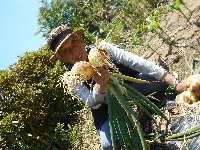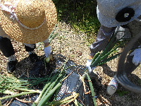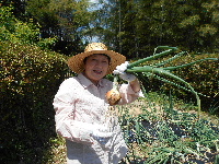 今日は玉ねぎの収穫です。昨年は小ぶりが多かったのですが、今年の玉ねぎは「こんなに大きくなりました!」