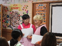 認知症予防(優しいリハビリ)では、各テーブル対抗で伝言ゲームを実施したり、コーラスを楽しんでいただきました。