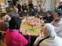 お好きな飲み物を飲まれながら、各テーブル毎にお話しをされたり、手芸をされたりとそれぞれの時間を楽しんでいただけたご様子に、まずは一安心。