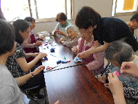 ゆっくりお茶を飲みながら談話をされたり、認知症予防の体操やレクレーション、手工芸なども行うなどあっという間の3時間でした。