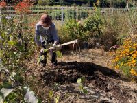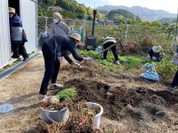 心地よい風の吹く中、みんなで協力して畑仕事。
