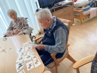 はがきに貼るときも「こうがええか!いやこっちのほうがええの!」っと考えながら作られていましたよ(^^♪