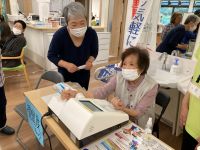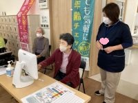 本日のオレンジカフェは、皆様のお肌チェック!肌年齢の分かる機械でご自分のお肌の年齢をはかってみました。