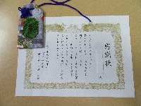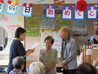 今年のデイサービスのプレゼントは、スタッフ手作りの「幸せのお守り」と「感謝状」です。喜んでいただけたでしょうか。