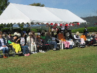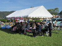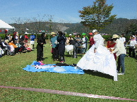 毎回、下松交流センターの芝生の広場をお借りして実施いたしますが、日差しが強く暑いため、今年はテントもお借りし、赤組白組各ひとつづつたてました。ところが、今年は日差しも強かったのですが、思いの他風が強くテントの中では少し肌寒いほどでした。看板等も風に飛ばされるなど、少々のアクシデントはありましたが、無事に最後まで実施することができました。