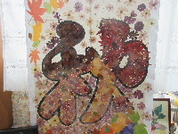 ボランティアの先生が、紅葉やコスモスの押し花を持参くださいましたので、大きな下絵に皆様で貼り付けていただきました。色合いがシックな感じで、とても素敵な作品に仕上がりました。早速、玄関に飾らせていただきました。