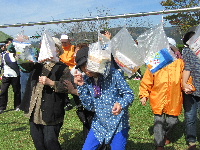 競技の内容は、「運命のお相手は?」という借り物競争?仮装行列?のようなものと、「何食い競争?」というパンだけではないさまざまなものがぶら下がっているパンくい競争がございます。大変白熱した勝負でしたが、どなたも笑顔いっぱいでご参加くださり本当に感謝・感謝でいっぱいです。