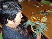 きれいに出来たので玄関に飾らせていただいてます。作ってくださった方も他のご利用者様も「きれいね~、上手にできたね~」とにこやかにご覧になられていますよ。