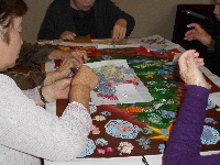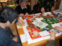 デイサービスにて押し花教室を実施いたしました。毎月ボランティアの先生がお越しくださりご指導いただいておりますが、今回のお題は「クリスマス」ということで、スタッフが用意した大きな下絵の上に色とりどりのお花を貼り付けていただきました。どうですか、賑やかな「クリスマスツリー」の完成です。