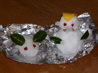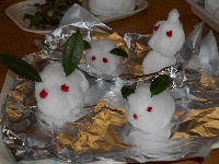 つい先日まで「今年は暖冬ですね」とあいさつがわりにお話しをしておりましたが、今朝になってビックリ!辺り一面の雪景色。日中も雪が止むことはありませんでした。そこで、皆様と雪遊びをすることにしました。はじめは、「冷たい」などとお話されておられた皆様もいつの間にか夢中になられ、ご覧の通りかわいい「雪だるま」や「雪うさぎ」ができましたよ。