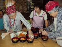 今日は、みんなで ”ちらしずし” 作りです。ニンジンをかわいく型抜きして飾りましたよ。