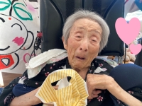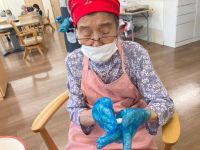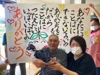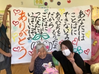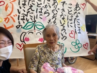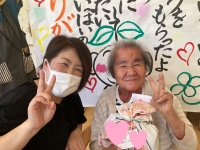 敬老の日のプレゼントを施設長から手渡され、笑顔が見られてよかったです!!