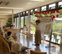 書道パフォーマンスや恒例の歌謡ショーの後、最後は利用者様も一緒にダンス♪ 大盛り上がりの中、幕を閉じました。