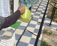 でもカエルは、水をかけるとすぐ飛んで日陰までいってしまいました