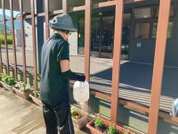 入居者様が「カエルもこんなに暑いとやれんよね~」と言われたので、カエルに水をかけにいきました。