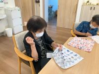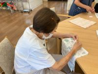 一針一針、丁寧に縫ってかわいい袋の出来上がり‼