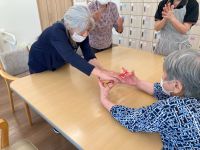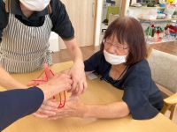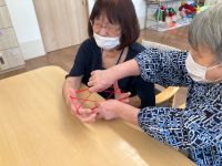 ちょっと、近くに行ってみると… あやとりをされておられました。