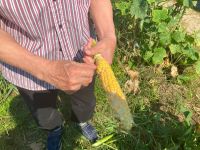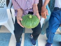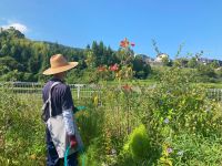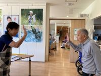 朝の散歩に行く途中、出勤してきたスタッフに出会いました。