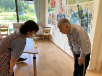 数日前から使い捨て容器や飲料水などを用意し、前日の夜勤さんはお風呂やありったけのバケツや容器に水を張って準備万端です。当日は調理場も使えないため朝はパンとスープ、昼と夜はお弁当になりました。断水予定時間前には入居者様もスタッフも、「トイレ行っとかなきゃ」と大騒ぎ。無事に工事も済み一安心です