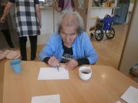 茄子を皆様でご覧になられた後、皆様熱心に描いておられました。描きながら、「これどうやって食べるかね」等とお話しされていました。