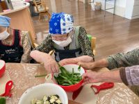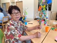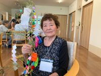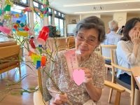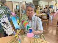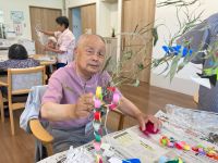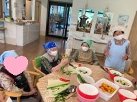今日は介護相談員の方の訪問日でした。「暑いですね~」と言いながらベランダで短時間、外気浴を行いました。相談員の方とお話をしながら、スポーツドリンクで一息。皆さんゴクゴクと飲まれていました。