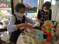 たくさんのコップ、タオルも皆様の手にかかると、あっという間にきれいになります。