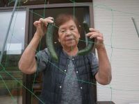 収穫して下さったご入居者様はお茶目なポーズをとってくださいました。