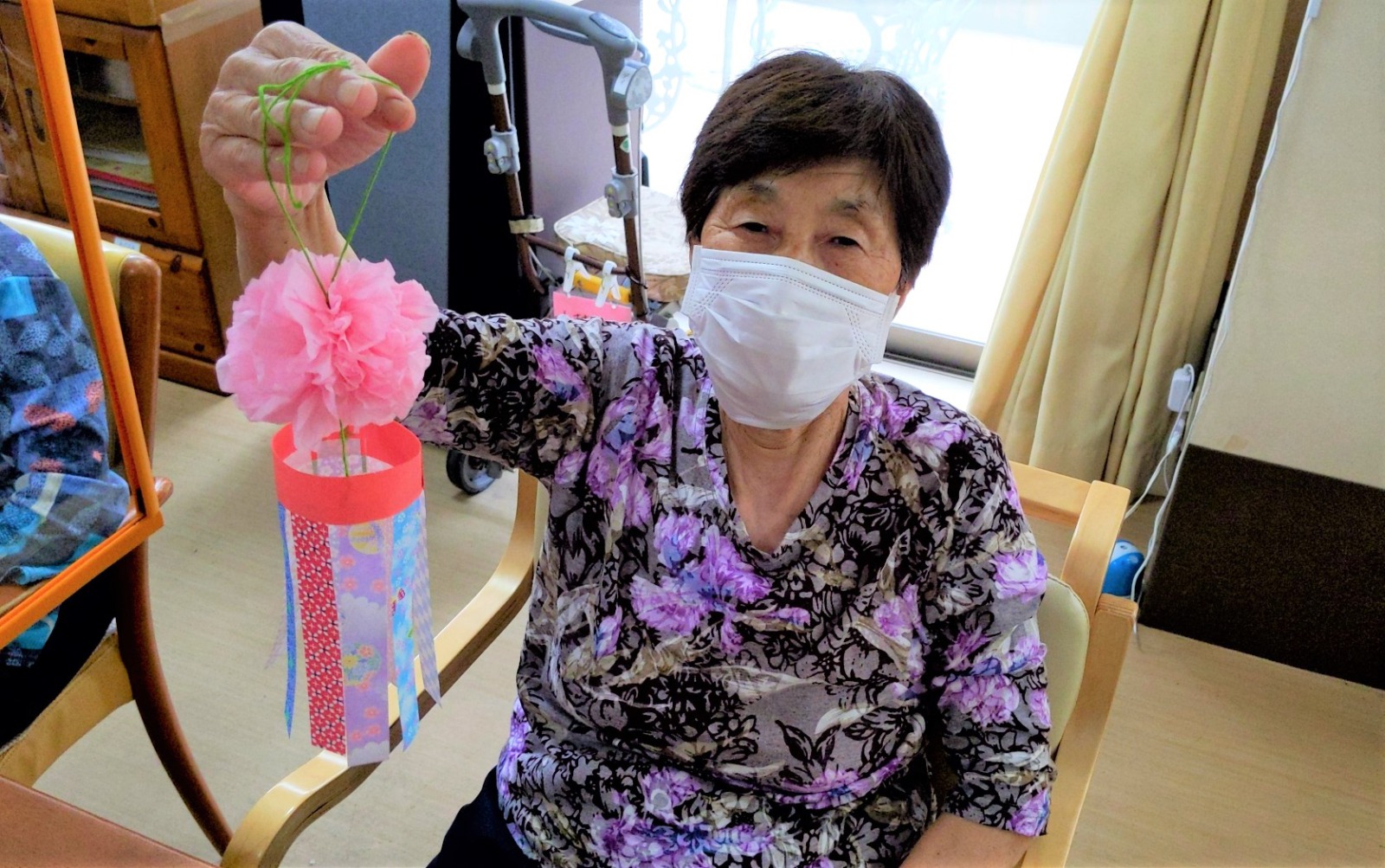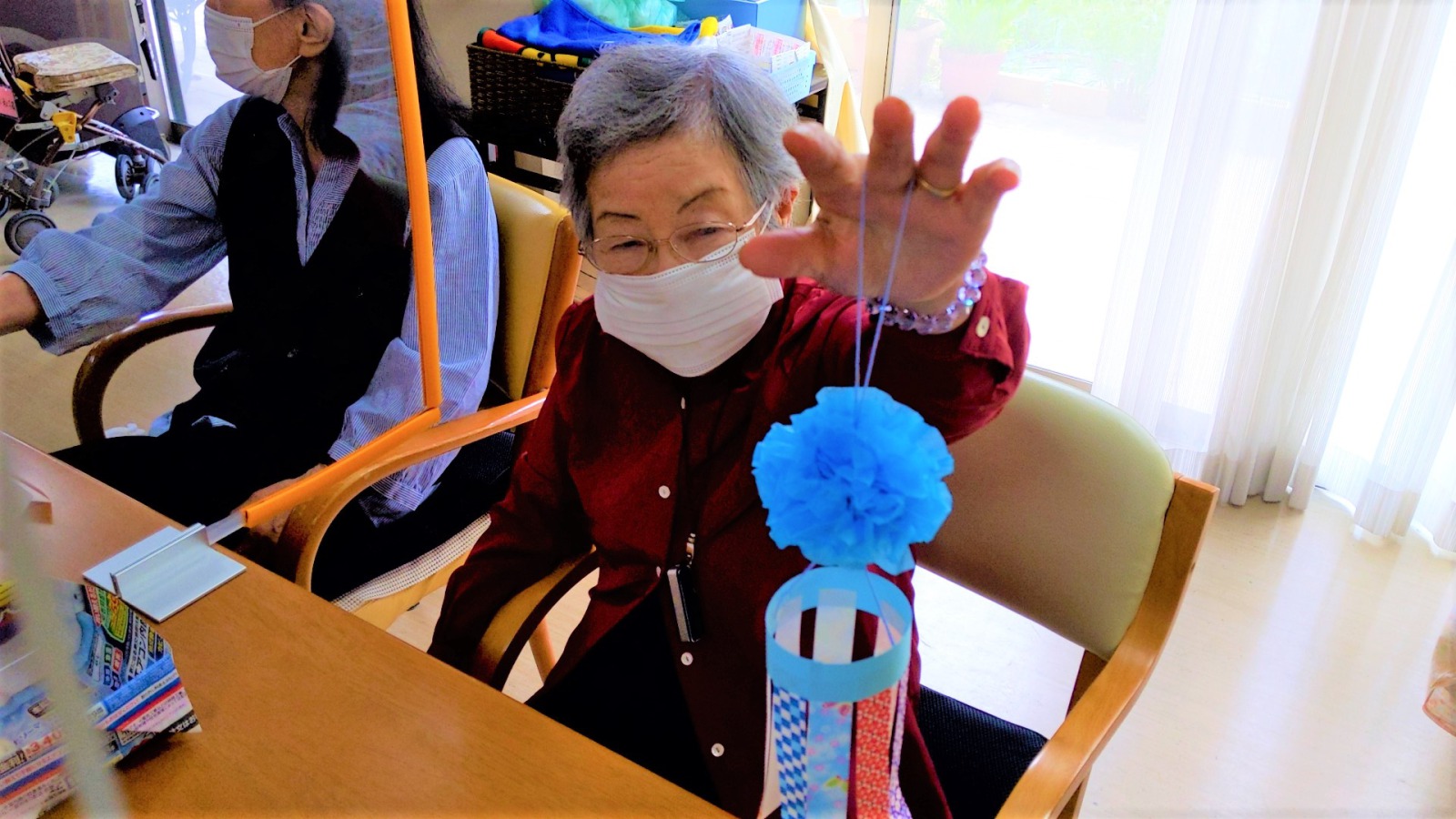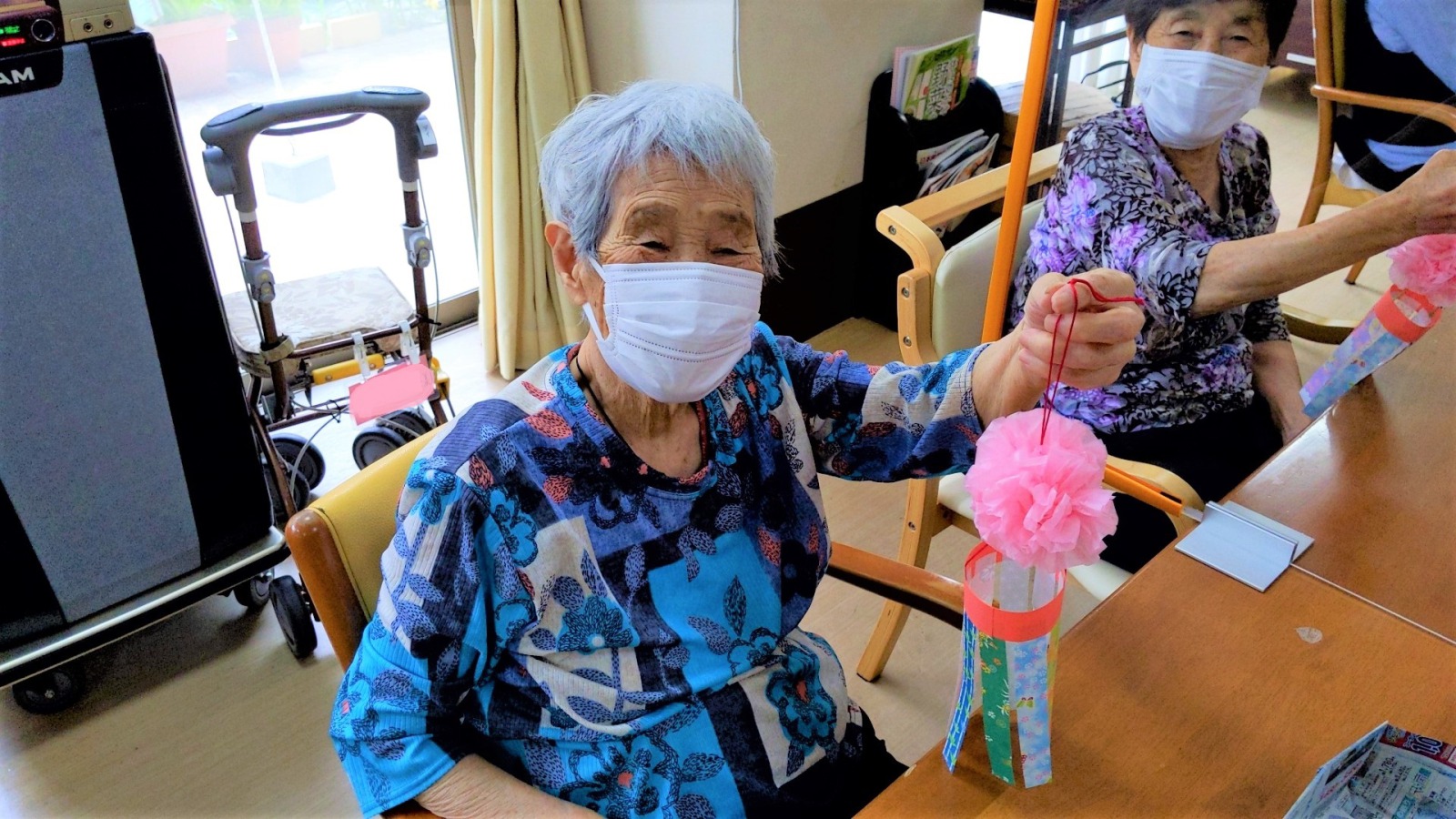 もうすぐ七夕ということで、デイご利用者様に七夕飾りを作っていただきました。
