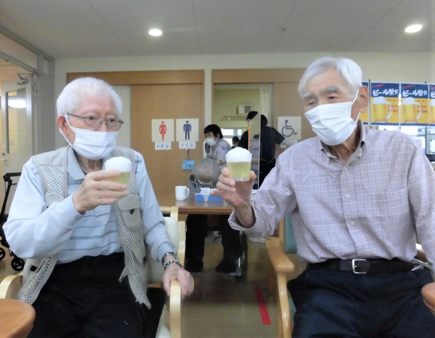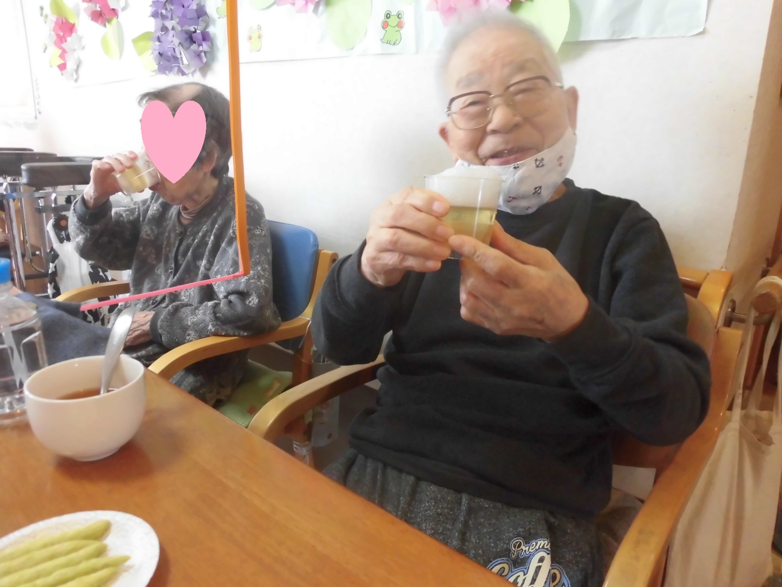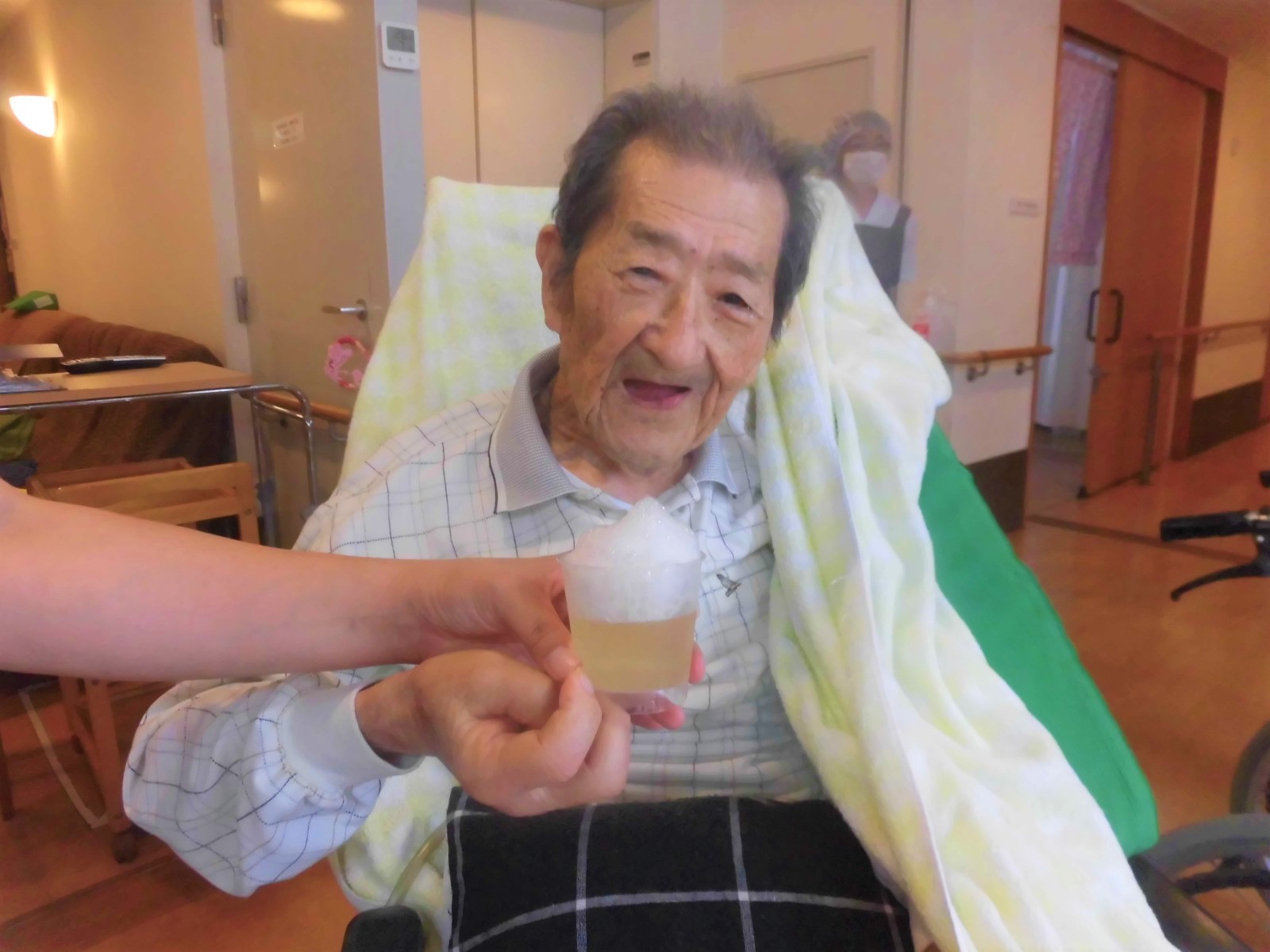 本当は、昨日が父の日でしたが、デイサービス利用者に男性が多いこともあり、本日、父の日のお祝をしました!となれば「生ビール」で乾杯!🍻と行きたいところですが、実はこれ「リンゴゼリー」なんです。